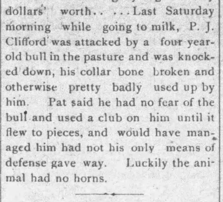 Occupations and accidents are subjects worth exploring. While my great-grandmother is listed in the US census as a schoolteacher, it didn't specify which school she taught. Through the newspapers I was able to follow her career progression from one county school to another. She eventually ended up teaching at a school in a neighboring town before she married. Knowing which schools she taught and the places she boarded brought her teaching career to life for me. One article even mentioned how her class performed. She seems to have had more patience than I have! Her future husband had an accident reported in the paper—he was knocked down by a bull during chores! Thankfully he escaped with only minor injuries.