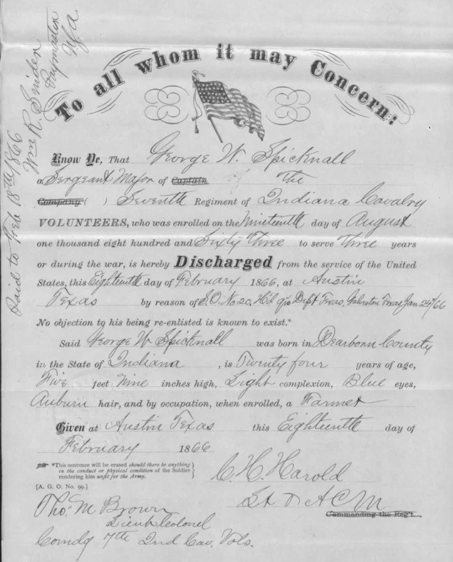 George Spicknall’s discharge papers, included in his homestead file.