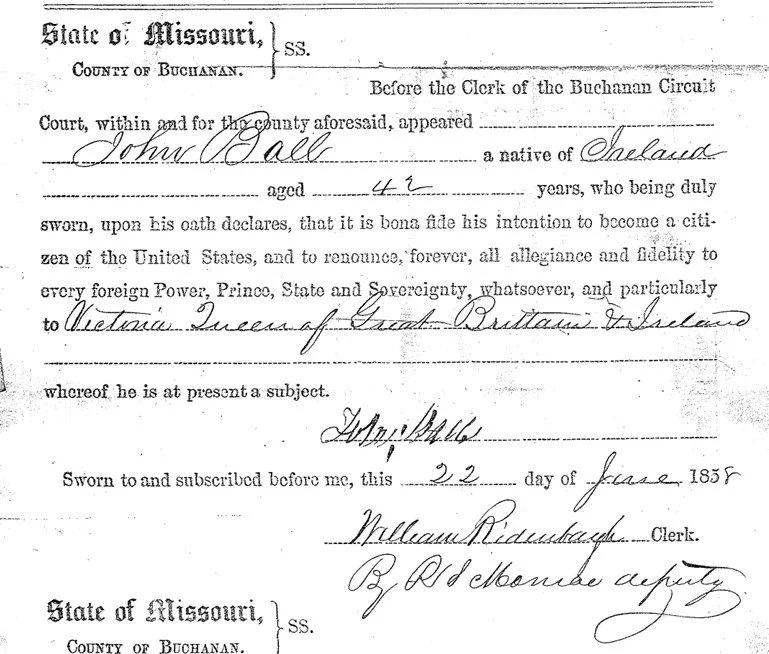 John Ball filed to become a citizen of the United States when he applied for a homestead in 1858.