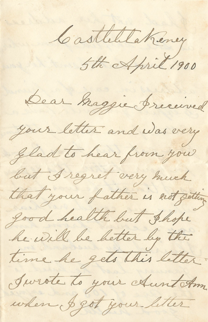 Our Irish ancestors left us with an unique puzzle that can take years to put together – and often only accomplished with some luck and creativity. I was lucky enough to inherit a letter from my great grandmother’s Irish family sent to her in 1900. When I opened that fragile envelope, buried in a box of other family paraphernalia, I was overcome with a profound sense of discovery. The letter had been read before, likely my Grandpa Danehey and his siblings knew about it, but the information contained within had failed to reach my generation, if not my father’s. The words of a long lost Aunt echoed from more than a hundred years before. The family had thought my second great grandfather dead, and without his daughter’s letter, he would likely have been considered lost to the American wilderness. That scrap of paper, that somehow survived generations of neglect, revealed my second great grandfather’s home in Ireland, and his family. That one postmark opened up the connection to the siblings he left in Ireland, and even those who immigrated to England.